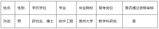 根据《贵阳学院2025年度高层次人才引进公告》,经报名和资格审查,现有通过资格审查人员1人,具体情况如下: